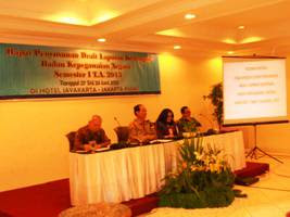 29/06/2013Jakarta-Humas BKN, Keberhasilan Badan Kepegawaian Negara (BKN) meraih Opini Wajar Tanpa Pengecualian (WTP) untuk keempat kalinya berturut-turut (2009,2010,2011, dan 2012) adalah prestasi bersama yang diwujudkan semua stakeholders (pemangku kepentingan) terkait. Untuk itu, capaian ini patut disyukuri dan ditingkatkan terus pada masa-masa mendatang. Arahan ini disampaikan Sekretaris Utama BKN Edy Sujitno saat membuka Rapat Penyusunan Draft Laporan Keuangan (LK) BKN Semester I Tahun Anggaran 2013 di Ruang Rapat Marbela lantai 6 Hotel Jayakarta Jakarta, Kamis (27/6). Ikut hadir dalam kegiatan ini Plt.Kepala Biro Keuangan Ibtri Rejeki, Kepala Biro Umum dan Perlengkapan Pepen Julia Effendi, dan Inspektur Farel Simarmata.
